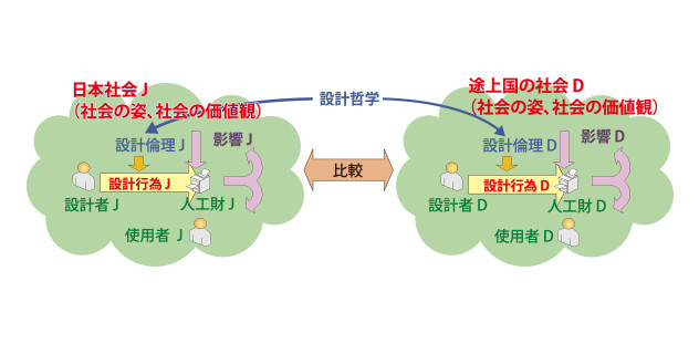 本研究では、社会の価値観と設計との相互の関係性について俯瞰的視点から議論するとともに、今後の設計の在り方を含む、設計倫理の在り方を検討することを目的とする。特に、ケーススタディの対象として、日本社会と発展途上国の社会という異なる二つの社会における人工財にまつわる環境問題を想定し、両者を比較することで社会の価値観と設計との相互の関係性を明示化することを試みる。その際、以下の点を中心に議論を進める。
